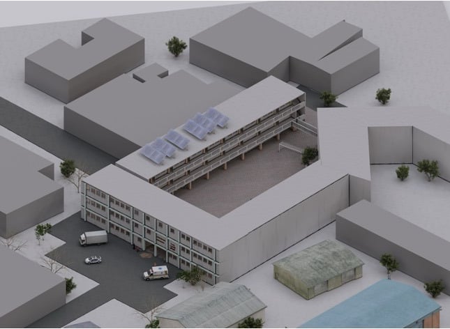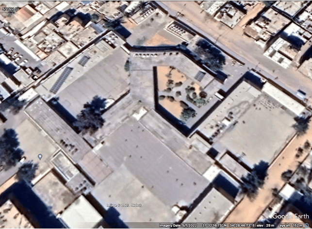 Images of the damaged site were taken at night and from a single angle, pointing from the entrance toward the school's inner courtyard.