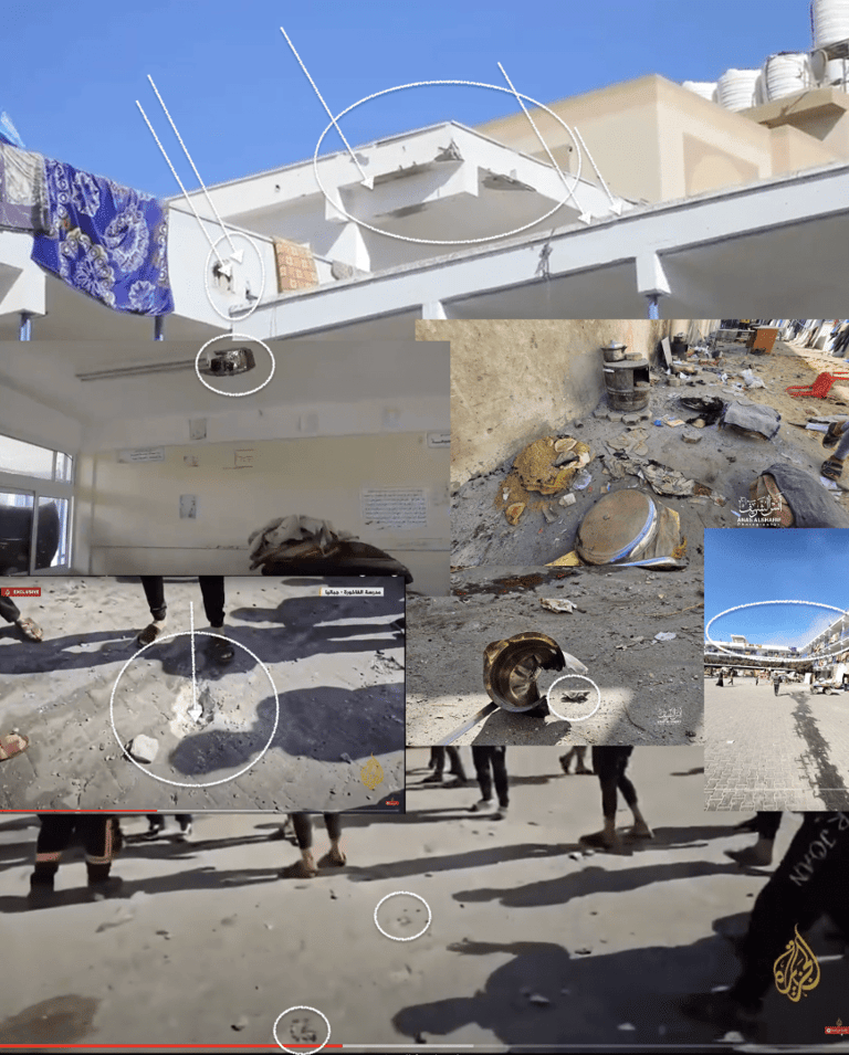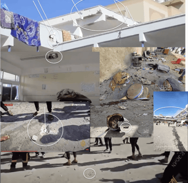 An analysis of the visual evidence and the trajectory of the incoming projectiles indicates that the attack might have involved Israeli artillery shells.
