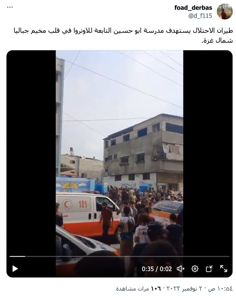 The bombing of Shati Boys' School wasn't the only attack on the morning of November 2nd. A separate attack also hit Abu Hussein School in the Jabalia refugee camp that same morning.