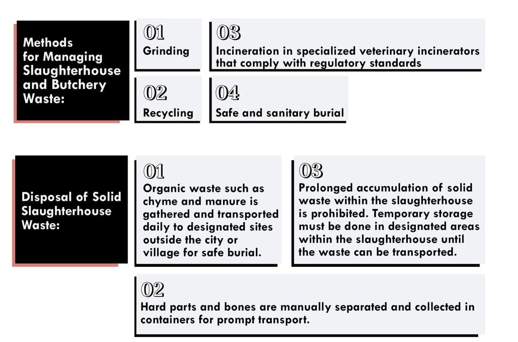 The Environmental Guidelines for Cattle Slaughterhouses and Butchering Points, issued by the Ministry of Environment, define the proper methods for managing solid waste disposal.
