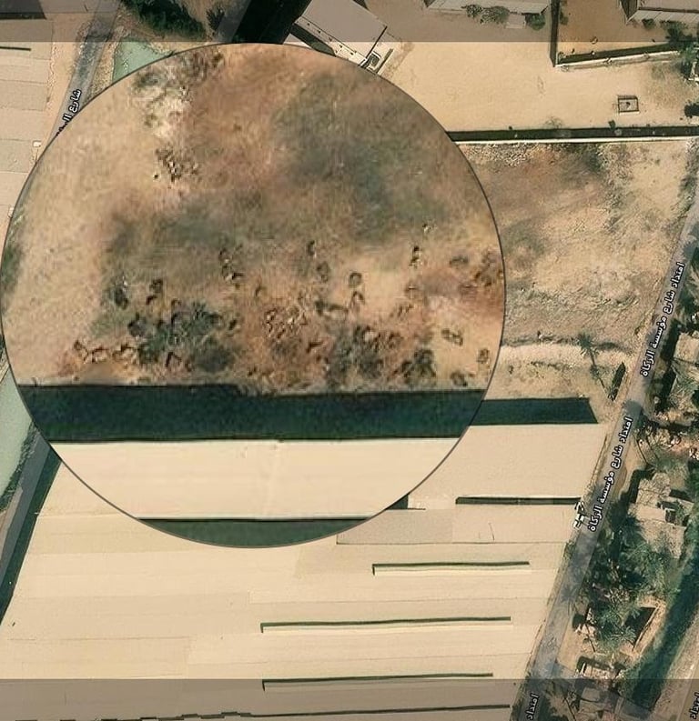 Satellite images of the Mumtaz slaughterhouse in Al-Marj showing solid waste scattered on the ground, dated 06-01-2024.